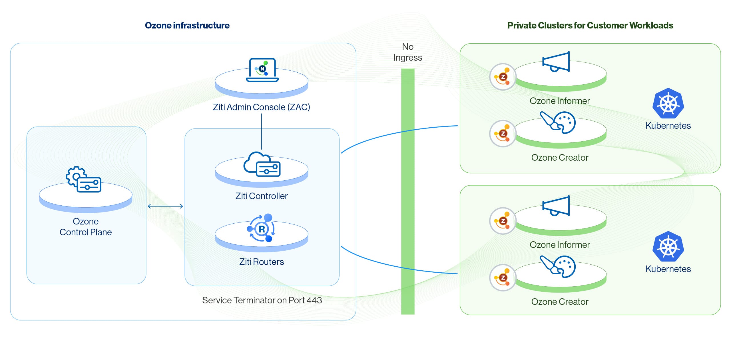 Here is how Ozone used Ziti to manage their customers’ Kubernetes environments without requiring any inbound access: