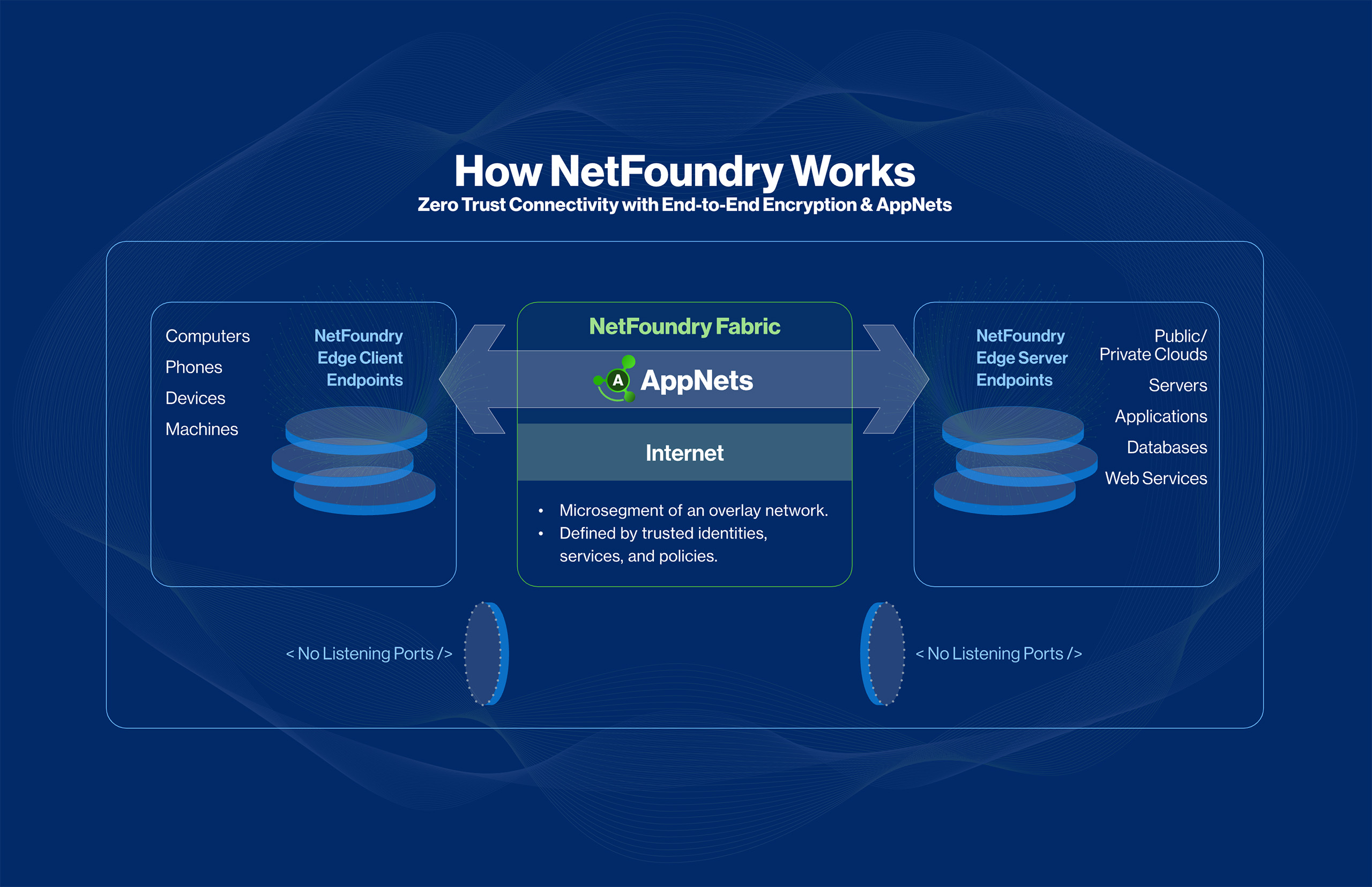 + NetFoundry zero trust SDKs to embed zero trust endpoints in software